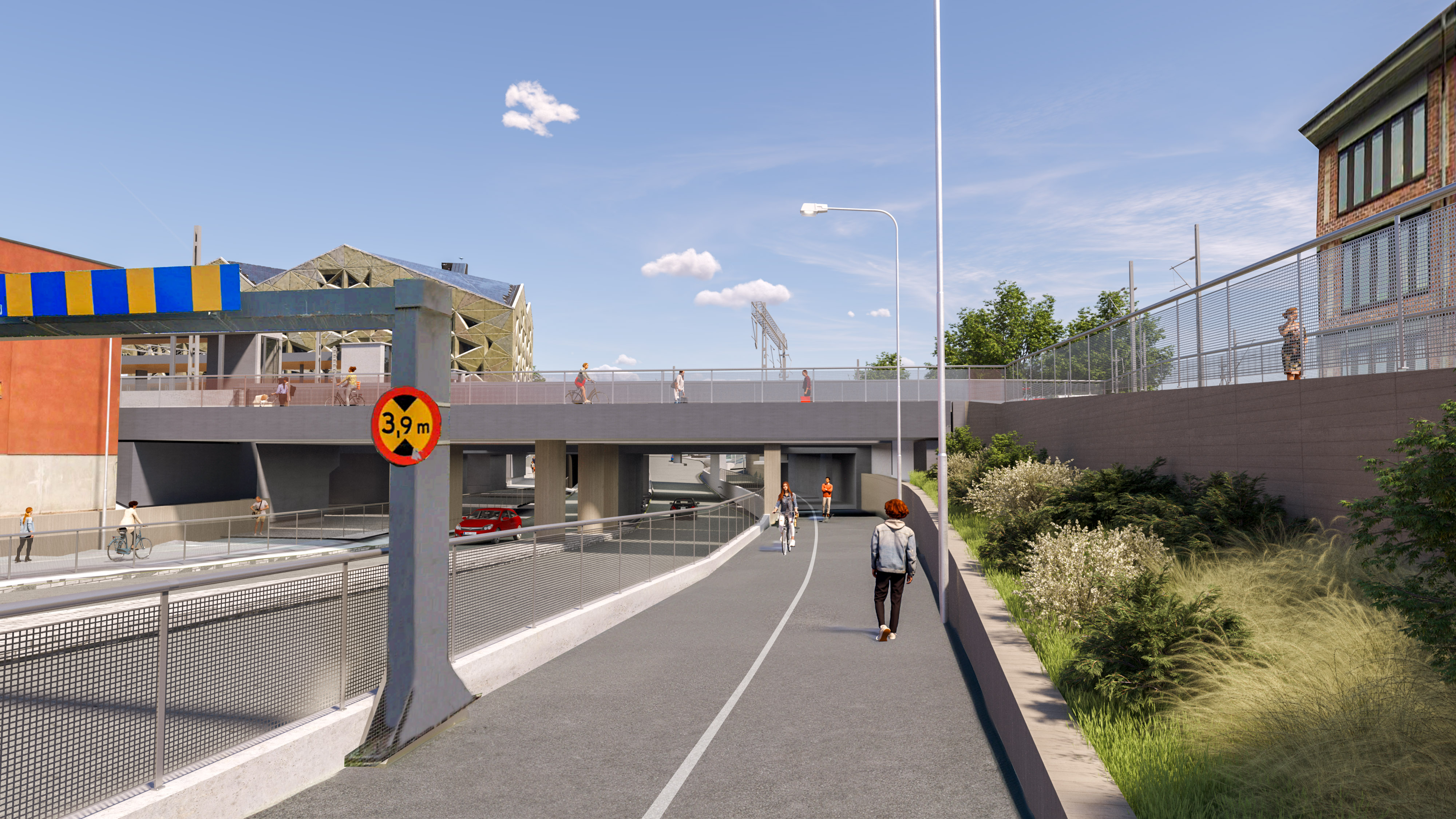 Bildtext: Vi planerar för en ny gång- och cykelbro över Stranbogatan.